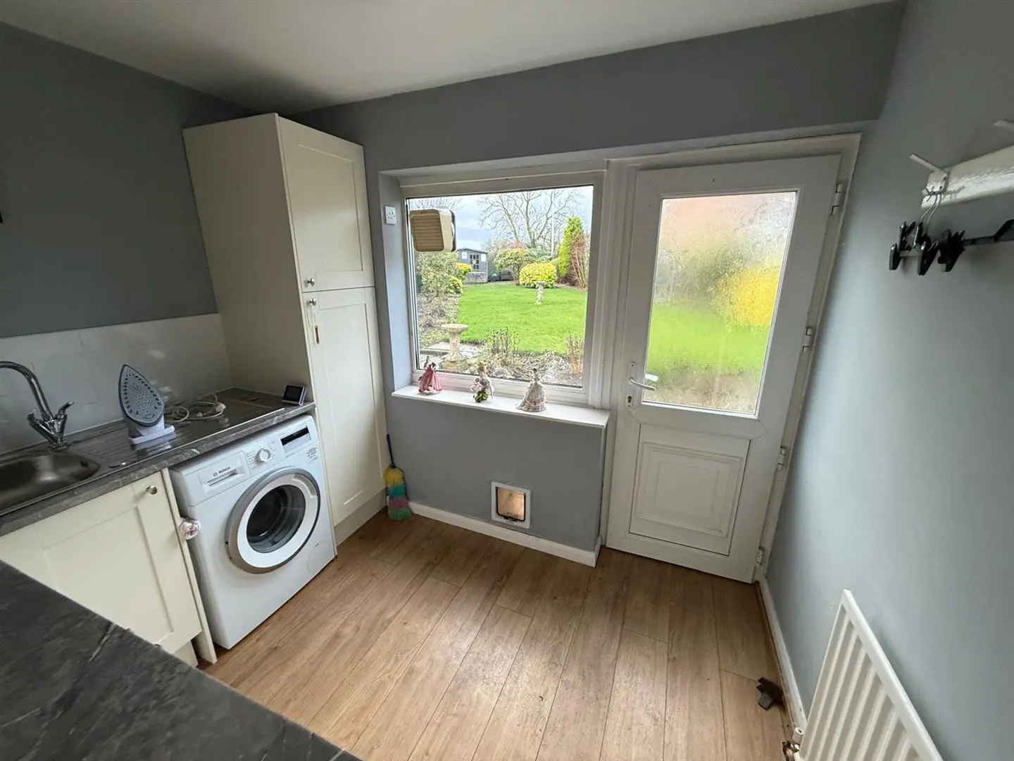 The utility room is warmed by a central heating radiator and is fitted with a range of wall and floor units with contrasting worktops incorporating a stainless steel sink and drainer. The utility room benefits from laminated flooring, tiled splash backs and a UPVC double glazed window. A UPVC double glazed door leads out to the rear garden.