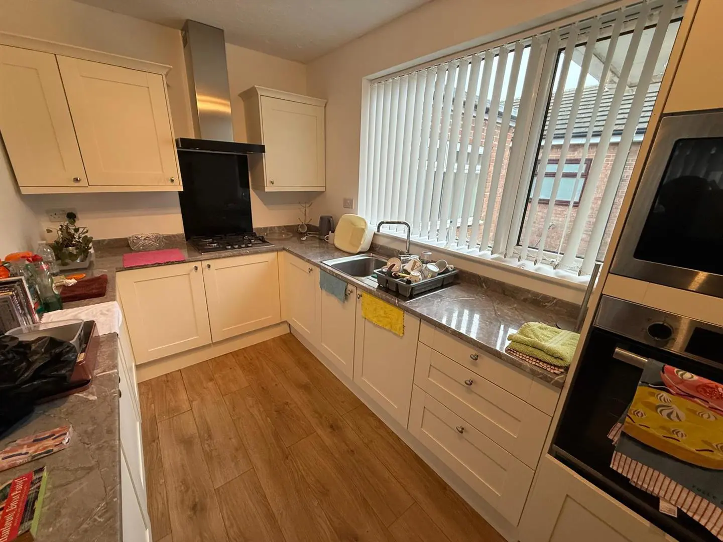 The modern and most contemporary kitchen is fitted with a comprehensive range of wall, floor and drawer units with contrasting worktops incorporating a stainless steel sink and drainer. The kitchen benefits from a UPVC double glazed window overlooking the front elevation of the property, laminated flooring and a number of integrated appliances including a Beko microwave and a Beko electric oven with a gas hob. The dining room has a UPVC double glazed window overlooking the side elevation of the property. Warmed by a central heating radiator, tastefully decorated in neutral tones and benefiting from a traditional dado rail.