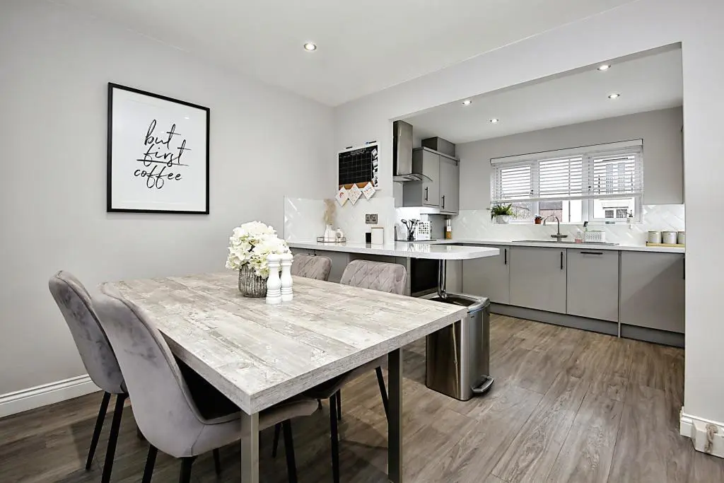 The dining room is situated to the rear elevation of the property. Warmed by a central heating radiator, tastefully decorated in neutral tones and benefiting from LVT flooring and double glazed French door which lead out to the rear garden.