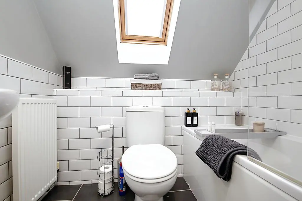 The bathroom has laminated flooring, partially tiled walls, a UPVC double glazed window and is fitted with a modern suite comprising of a panelled bath with overhead shower, a wash hand basin and a low-level WC.