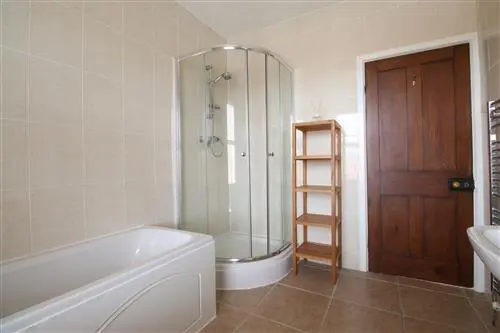 The bathroom is fitted with four piece suite comprising of a shower cubicle with shower, a panelled bath, a low level WC and a wash hand basin The bathroom is warmed by a towel radiator and benefits from tiled walls a tiled floor and an obscure window to the rear.