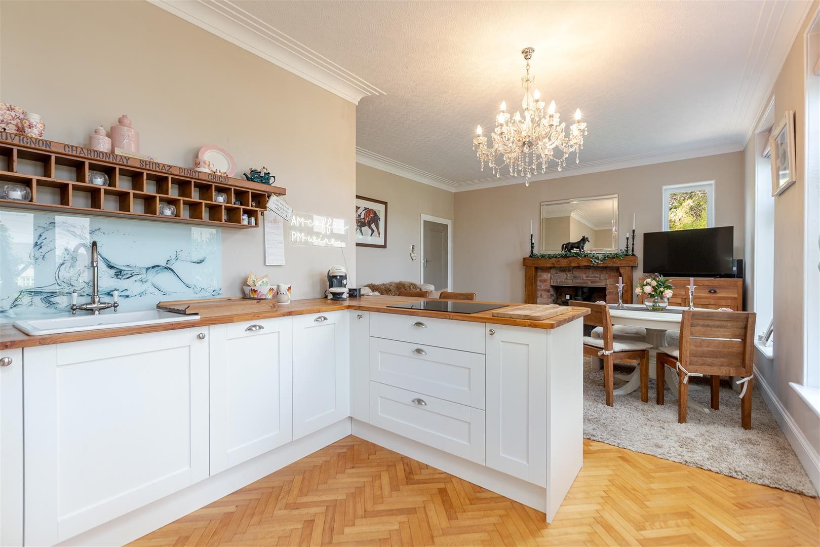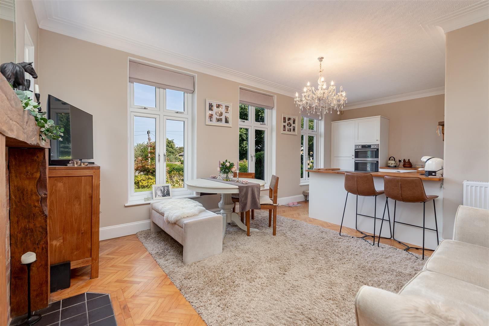 As you step inside, you will be greeted by a fine interior design that seamlessly blends elegance with functionality. The heart of the home is undoubtedly the stunning open plan kitchen and living room, which creates a perfect space for entertaining guests or enjoying quality time with family. The layout encourages a warm and inviting atmosphere, making it ideal for both casual gatherings and more formal occasions.
