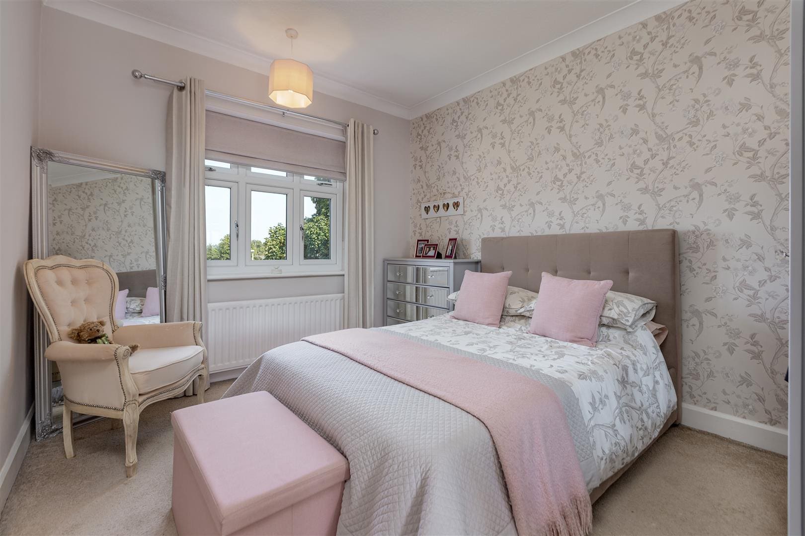 A double bedroom with a double glazed window overlooking the front elevation of the property. Warmed by a central heating radiator and tastefully decorated.