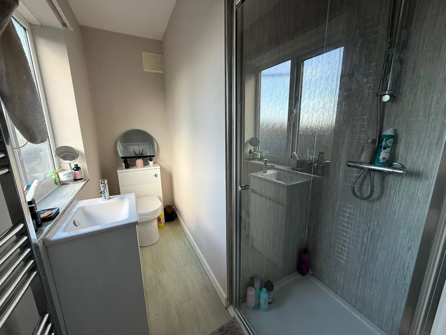 The En suite shower room is warmed by a central heating radiator, has a UPVC double glazed window and is fitted with a modern suite comprising of a shower cubicle with shower, a wash hand basin inset into a vanity unit and a low level WC.