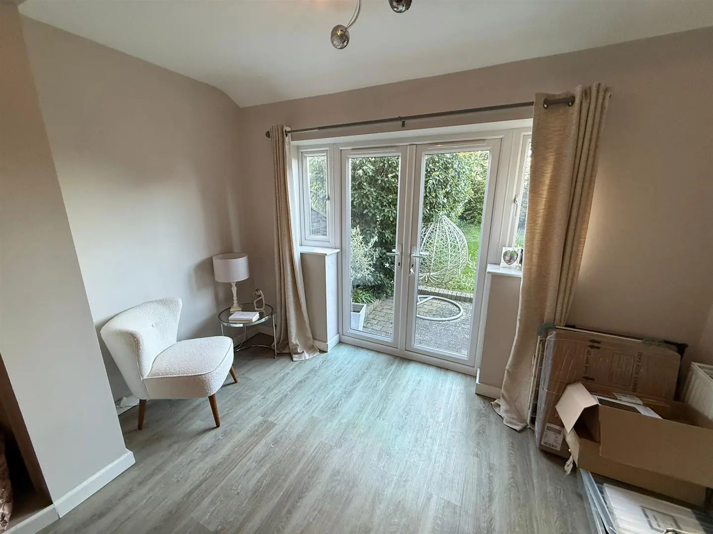 The garden room is warmed by a central heating radiator, is tastefully decorated in neutral tones and benefits from double glazed French doors with double glazed windows to either side which lead out to the rear garden.