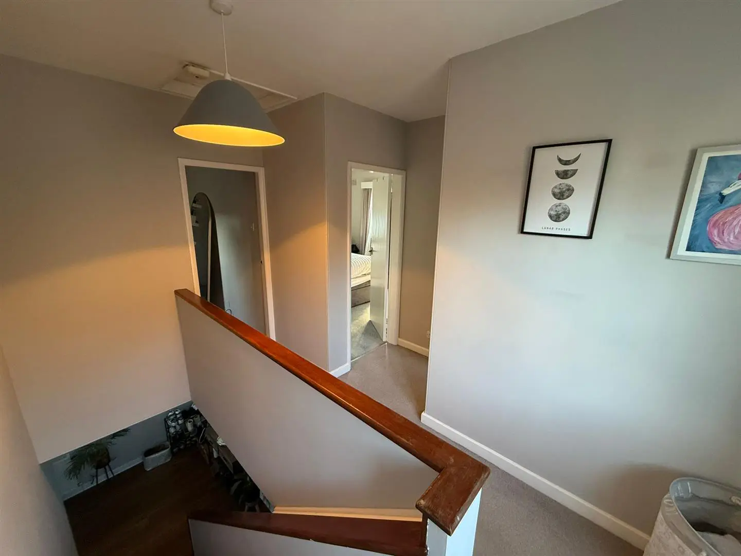 A staircase leads to the first floor landing. The landing benefits from a window.