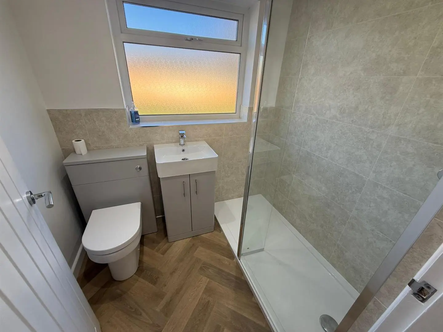 The new shower room is fitted with a modern and most contemporary suite comprising of a walk in shower cubicle, a wash handbasin inset into a vanity unit and a low level WC. The shower room benefits from stylish vinyl flooring, partially tiled walls and a UPVC double glazed window with privacy glass.