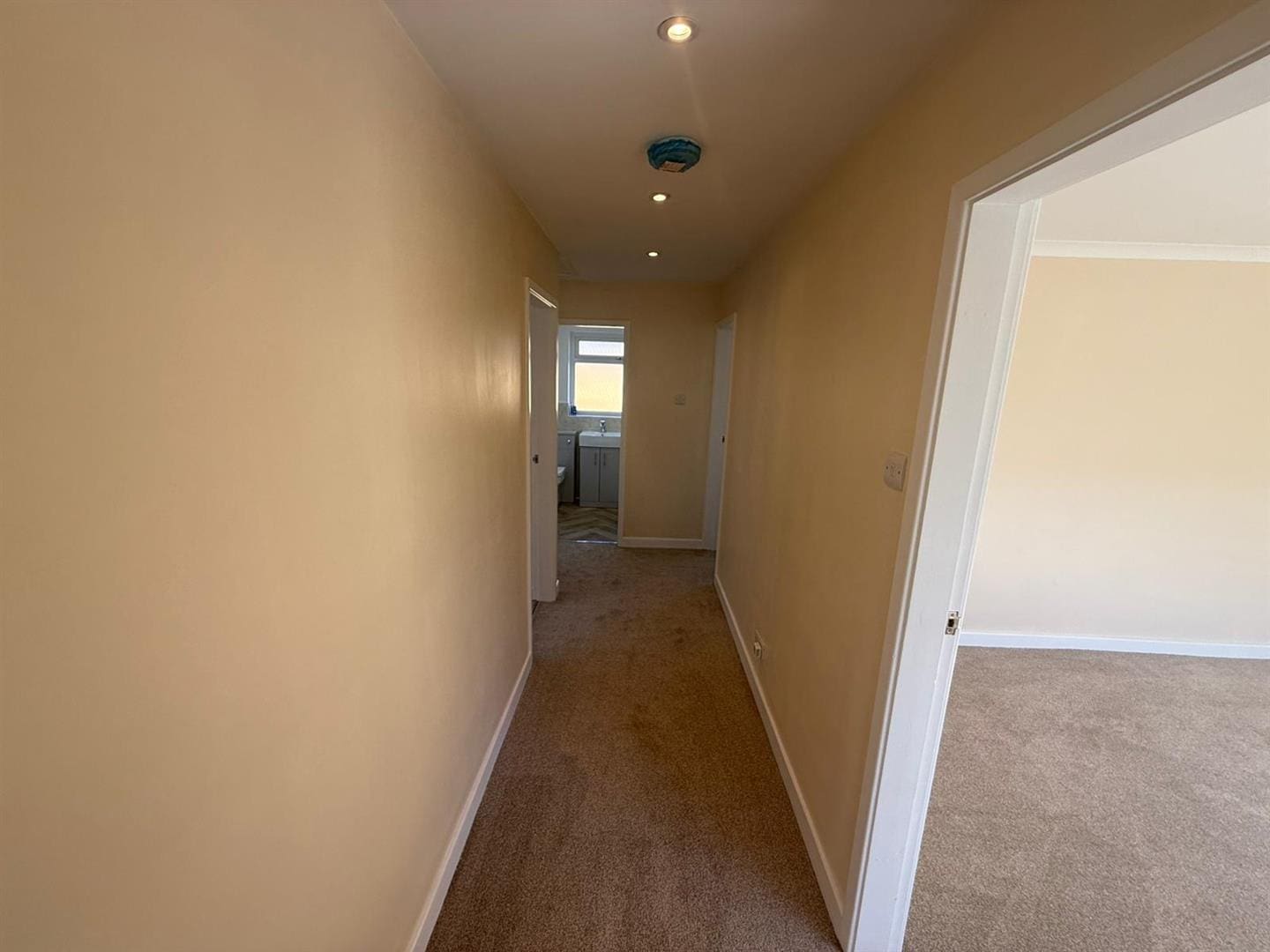 A most welcoming entrance hallway warmed by a central heating radiator, tastefully decorated in neutral tones and benefiting from inset spotlights to the ceiling.