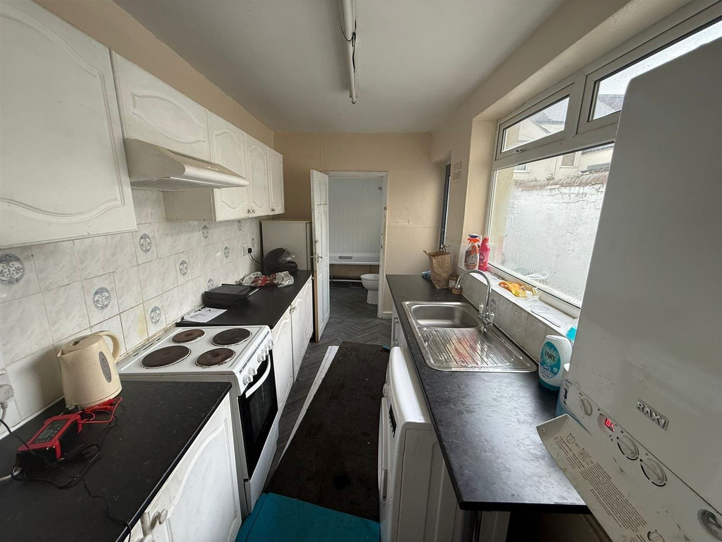 The kitchen is fitted with a range of wall, floor and drawer units with contrasting worktops incorporating a stainless steel sink and drainer. The kitchen benefits from a UPVC double glazed window and plumbing for an automatic washing machine. A door leads out to the rear yard.