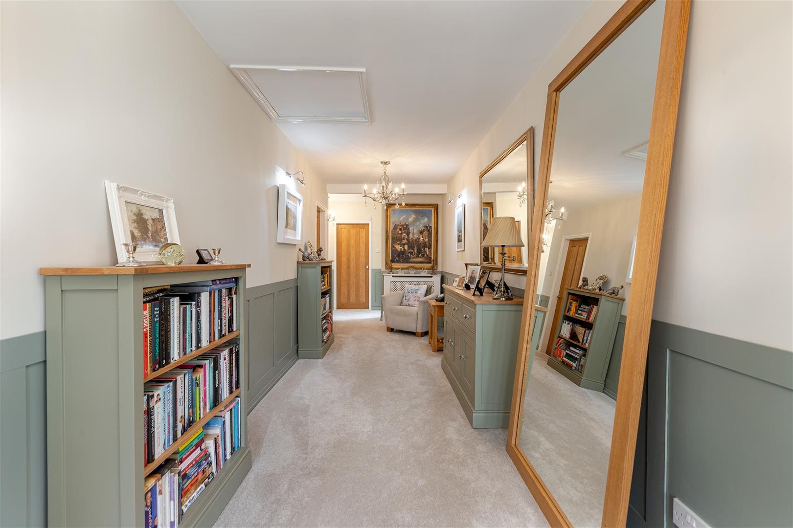 A spacious and most welcoming entrance hallway. Warmed by a central heating radiator and benefiting from tasteful decoration, half panelled walls and a hatch giving access to the loft.