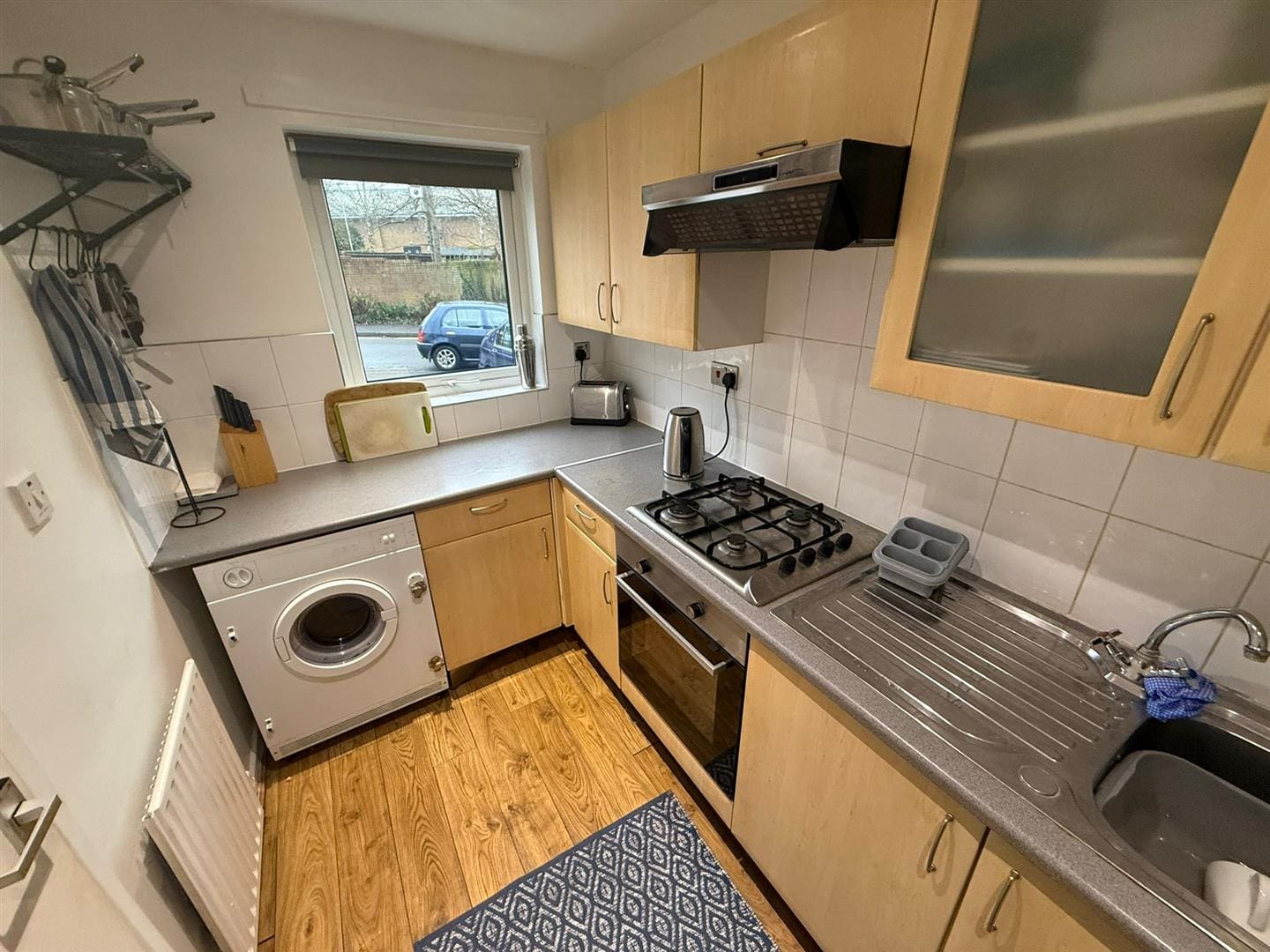 The kitchen is fitted with a comprehensive range of wall, floor and drawer units with contrasting worktops incorporating a stainless steel sink and drainer. The kitchen is warmed by a central heating radiator and benefits from laminated flooring, a UPVC double glazed window, plumbing for an automatic washing machine and an integrated electric oven with a gas hob and overhead extractor hood.