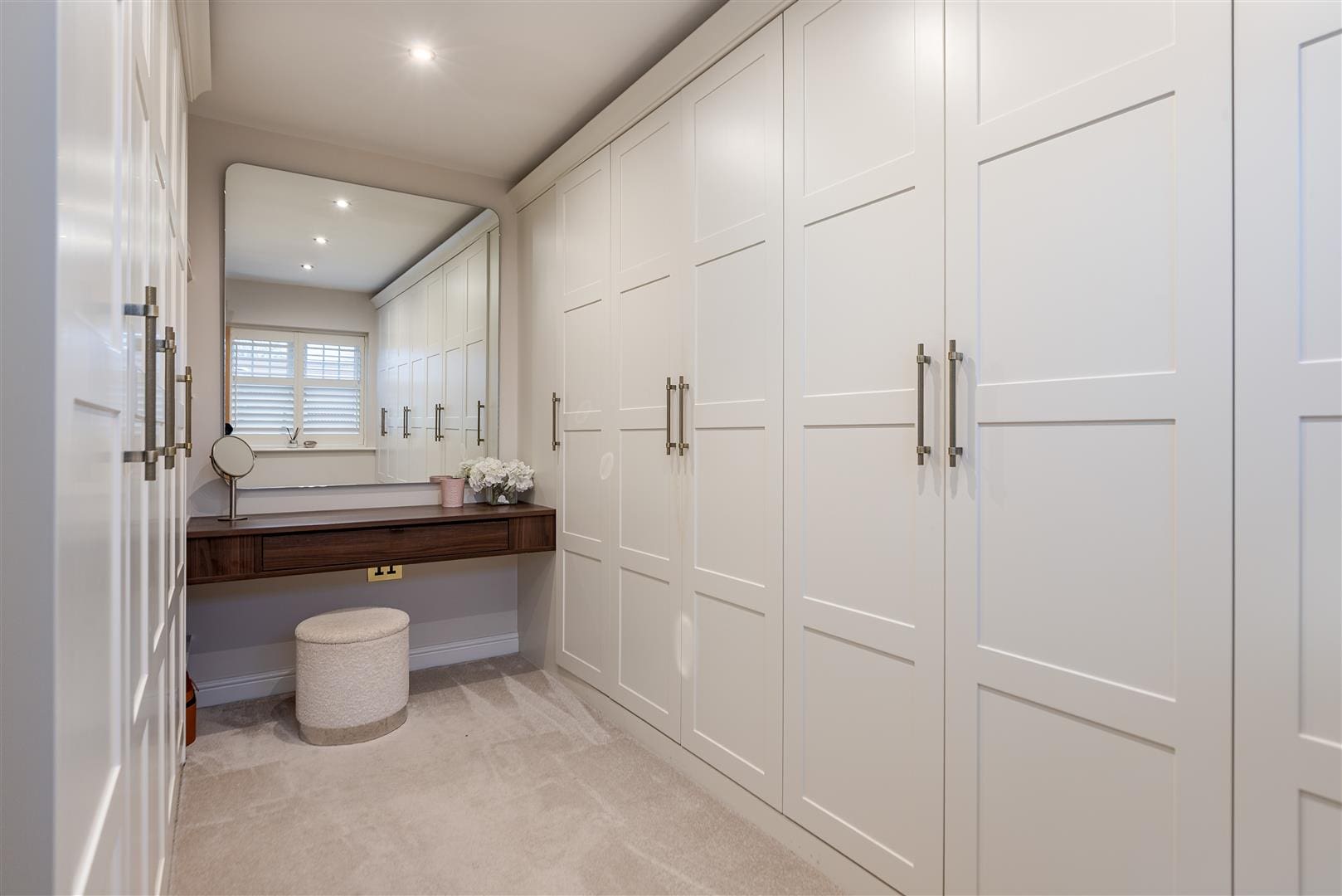 A further bedroom which is currently used as a dressing room. Warmed by a central heating radiator and benefiting from a double glazed window overlooking the front of the property, built in wardrobes and shelves providing useful storage and a built in dressing table.