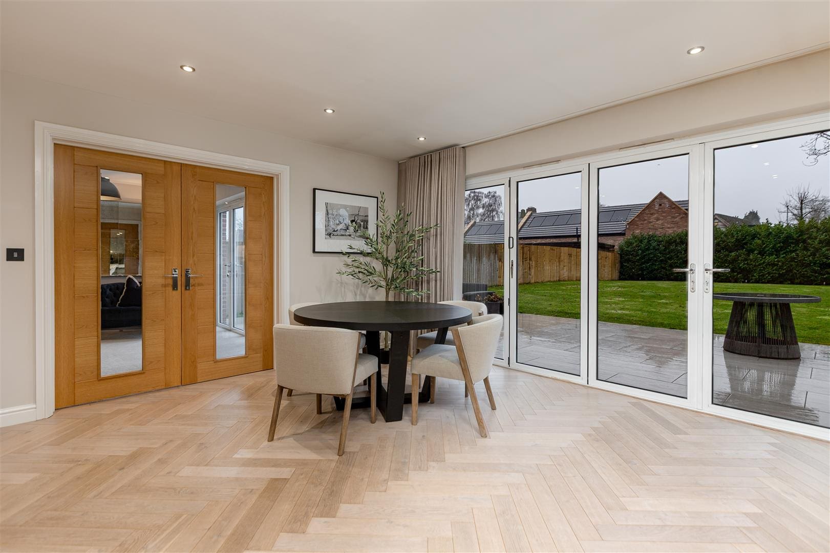 Externally to the front of the property there is a large block paved driveway with off road car parking for several cars, a garden which is laid to lawn and a double garage with an electric door. To the rear of the property there is, a lush, expansive lawn providing ample space for outdoor recreation, while the delightful patio area beckons for al fresco dining and leisurely moments. This enchanting garden becomes an extension of your living space, seamlessly merging the indoors with the outdoors.